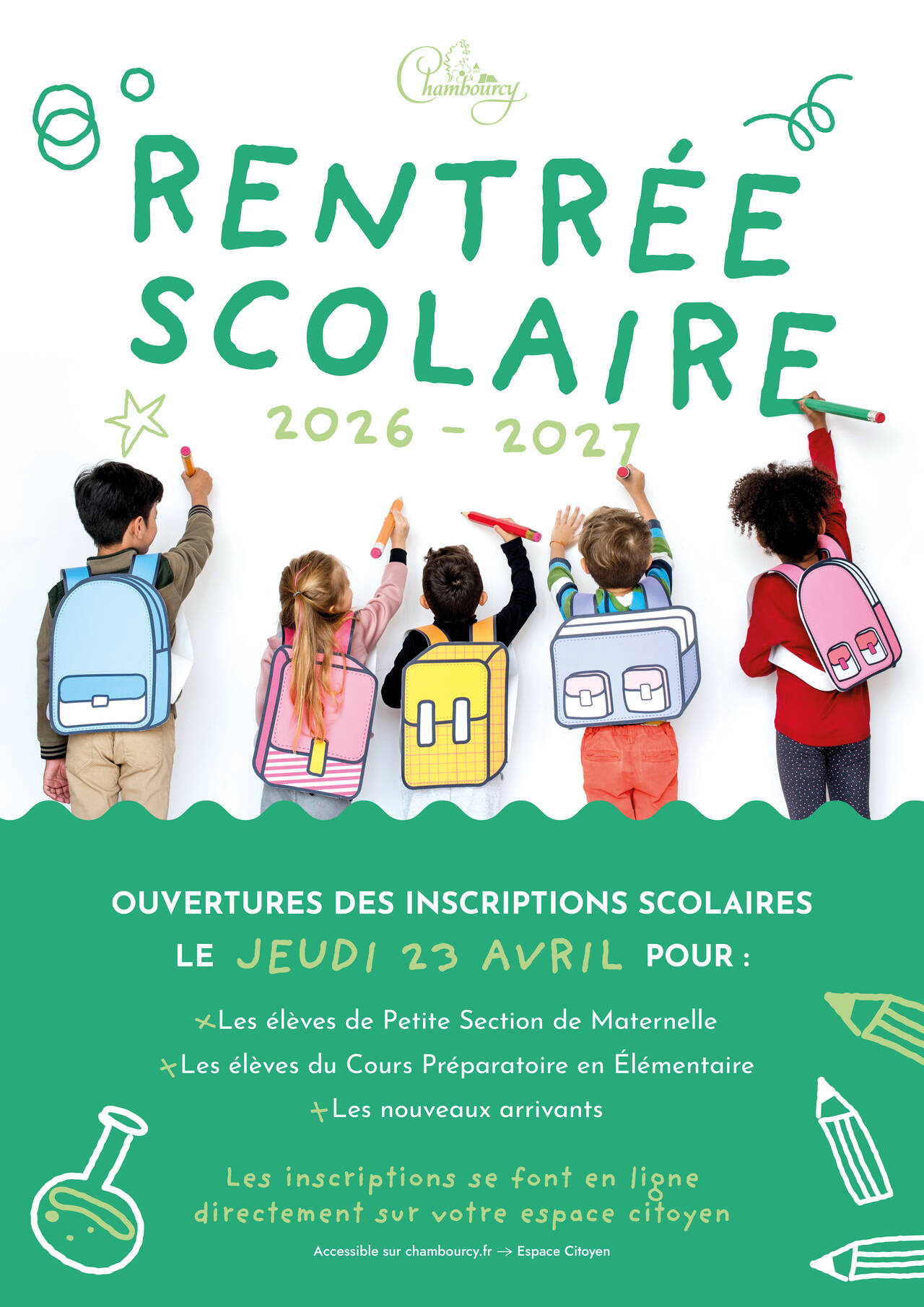 ouvertures des inscriptions scolaires le jeudi 23 avril pour :