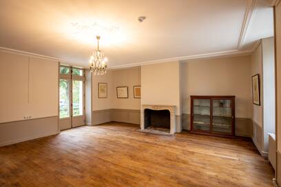 La capacité maximum au rez-de-chaussée s'élève à 100 personnes debout sans mobilier et 50 personnes assises avec mobilier soit environ 15 personnes assises réparties dans chaque pièce.